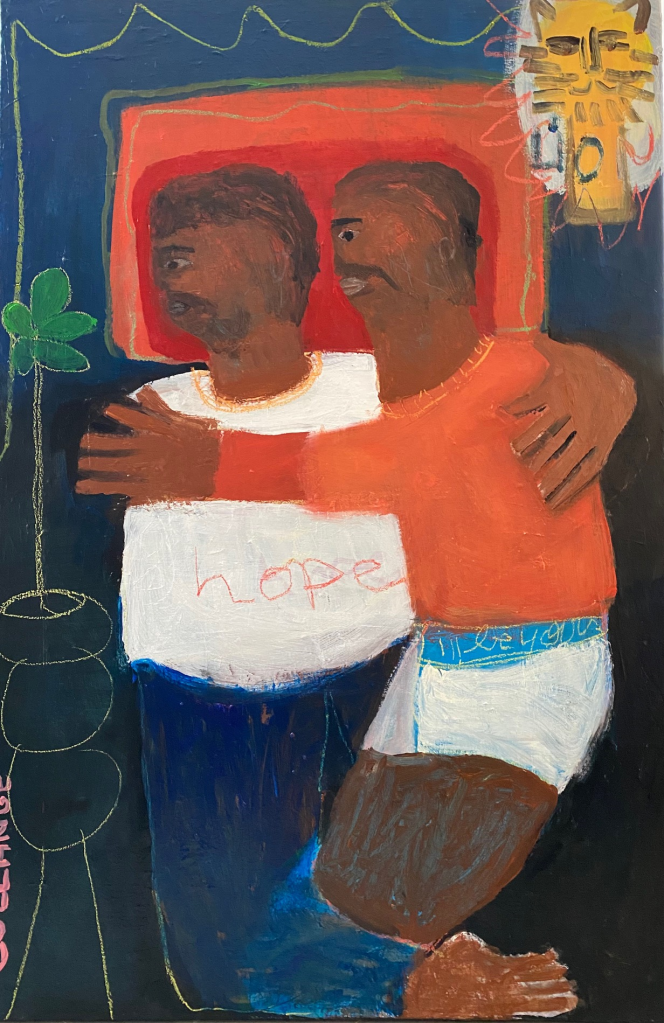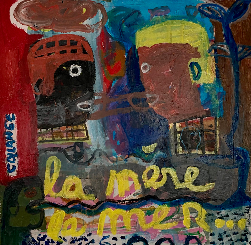 Born in Africa and raised in Paris, she now lives and works Provence. Quickly gaining recognition, her works are now exhibited internationally. Her art dives into the human soul, presenting « face-to-face » encounters with the world… With a strong sense of animality, likely rooted in her African, she explores being, the passage of time, love, and loss… Without judgment, she shares images of a multicultural world, where gender is fluid and our animalistic side takes on various forms… With her hands, using the earth, and bare feet, she covers and uncovers her world with colors and wild strokes, allowing the emotions that arise to flow freely. There are no preliminary sketches for a, no studies, no defined palette; the lines that emerge are spontaneous, without premeditation or set intention, only pure energy.