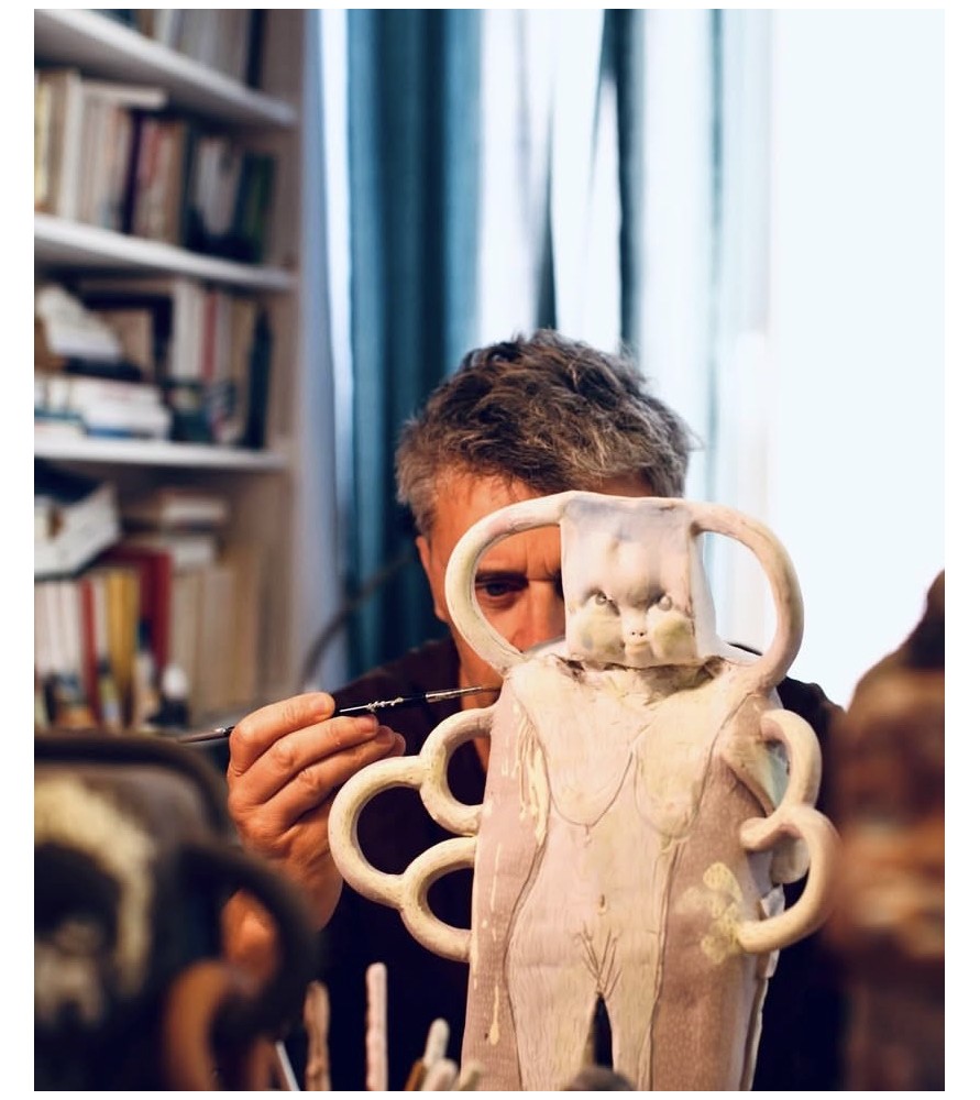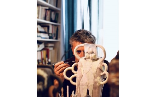 Il a commencé sa pratique artistique par la photographie et la peinture avant de se tourner vers la céramique. Il transforme tout ce qu’il touche, tout est chez lui source d’inspiration.